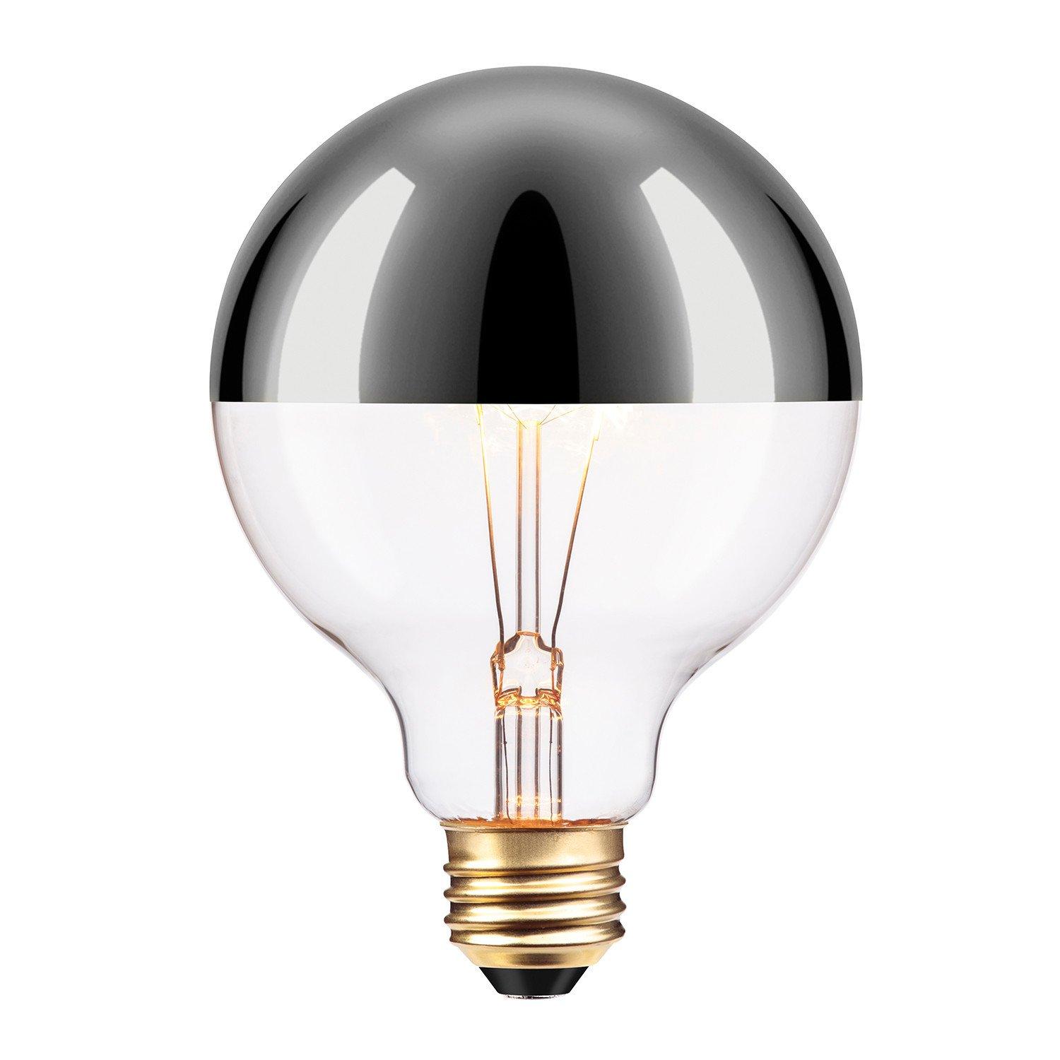 In the early days of electrical lighting, inventors such as Thomas Edison tested and retested as they searched for long-burning filaments. In 1890, the filament choice was carbonized cotton. Globe Electrics bulbs have a tungsten filament, which is used to reproduce the single hairpin loop of a vintage design. The Chromeo has a chrome tipped top to help direct the light and to beautifully reflect its surroundings. A perfect accent light, position it within a clear shade or exposed socket to enjoy its shape and ambient glow. Crafted to preserve the look of early 20th century lighting, Globe Electric's Incandescent designer silver CHROMEO 40-Watt 120-Volt medium base bulb is a perfect way to liven up a room. Please note, these bulbs are not as bright as modern bulbs of the same wattage and are recommended for exposed socket fixtures. Glass has a goldish amber tint which can vary in degree from light to medium. These bulbs can be dimmed.