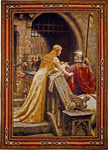 Fine Art Tapestries Godspeed by Edmund Blair Leighton | Woven Tapestry Wall Art Hanging | Medieval Lady with Arthurian Knight | 100% Cotton USA Size 53x40
