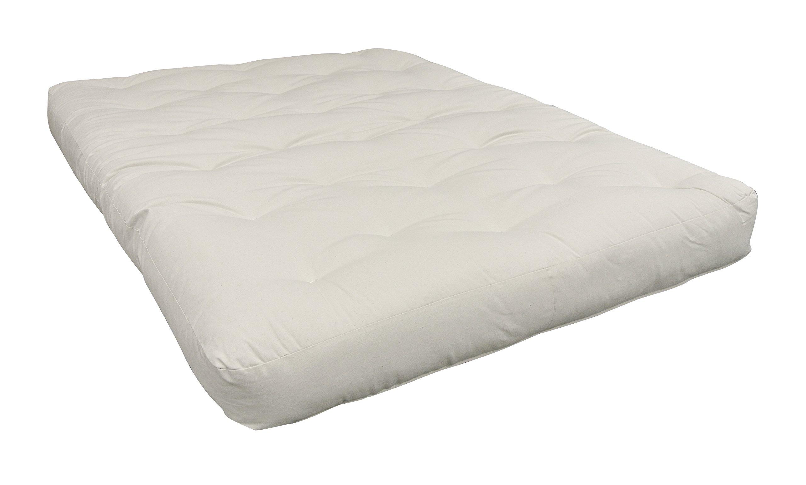 6" single foam & cotton #605 King Natural futon mattress has a medium firm surface feel. This mattress has one piece of solid 1 1/2" foam for resiliency, cushioning and comfort. The cotton and foam is pre-compressed under maximum pressure while the tufts are installed. This process ensures the mattress remains firm and durable. Dense "Joy" cotton batting surrounds the foam layer. Mattress available in various sizes and colors.