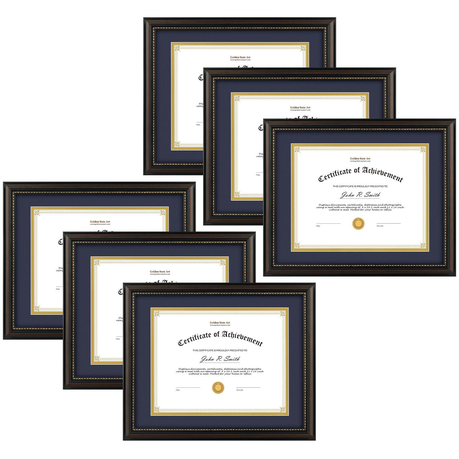 - Designed To Hold 8.5x11 Certificate/Documents with Mat or 11x14 Without Mat. Good For College Degree Frames, Diploma Frames, Bachelors and Masters Certificate Frames.The Classic 8.5x11 Photo Frame with Gold Trim Design Shows The Certificate Very Great and The Navy Over Gold Mat Also Makes The Content More Prominent