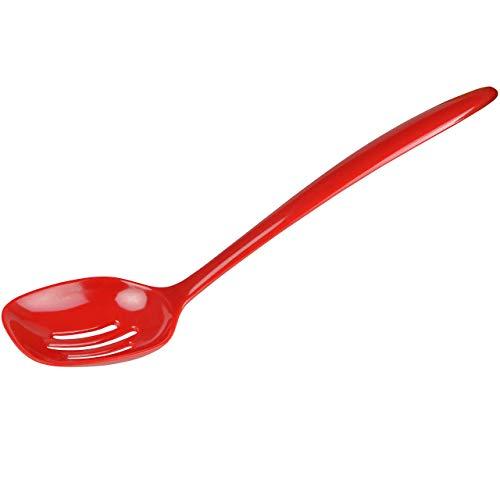The Gourmac 12 Inch Melamine Slotted Spoon stands out as a utensil perfect for both cooking and serving tasks. Its design includes a seamless handle, ensuring both a comfortable grip during use and a sleek appearance for table presentation. Dishwasher safe.