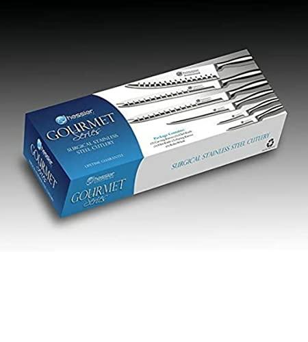 Each Set Contains: 2 Gourmet Carving Knives 1 Multi-purpose filet knife 1 Chef knife 2 Paring Knives 1 Stainless Steel 12" Robo-Whisk
