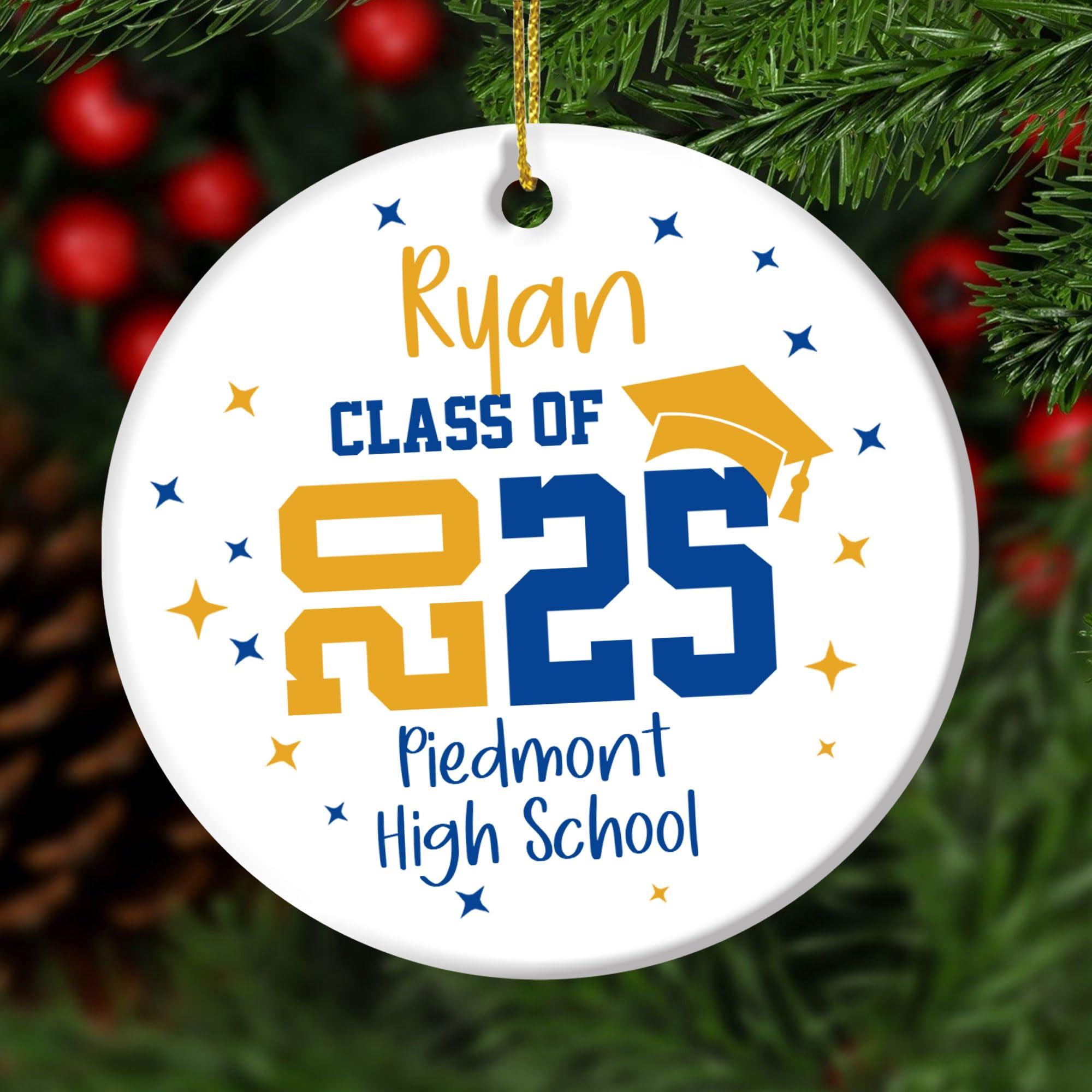 - Crafted from premium white ceramic, this ornament is both beautiful and durable. The gold hanging cord adds a touch of elegance, making it a perfect addition to any Christmas tree or home decor. This high-quality ornament will be cherished by your graduate for years to come.