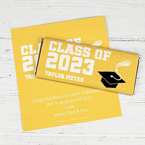 Graduation Party Favors (25 Wrappers) DIY Personalized Wrappers for Candy Bars - Yellow