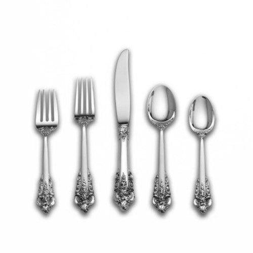 Wallace W1061500 In 1941, William Warren designed Grande Baroque - silver embodying the lavishness and romance that epitomized the 16th century. Among the most revered patterns in sterling history, Grand Baroque remains universally lauded as the pinnacle in third dimensional beauty. The Set Includes: -Salad Fork. -Place Fork. -Place Knife. -Teaspoon. -Place Spoon. Features: -Complements the Grande Baroque collection. -Color: Silver. -Handle pattern: Ornate. -Lifetime warranty. Specifications: -Material: Sterling Silver. Please Note: This item cannot ship to Alaska, Hawaii, or Puerto Rico. We apologize for the inconvenience. If you would like assistance finding an item that can ship to Alaska, Hawaii, or Puerto Rico, please contact our customer service team.