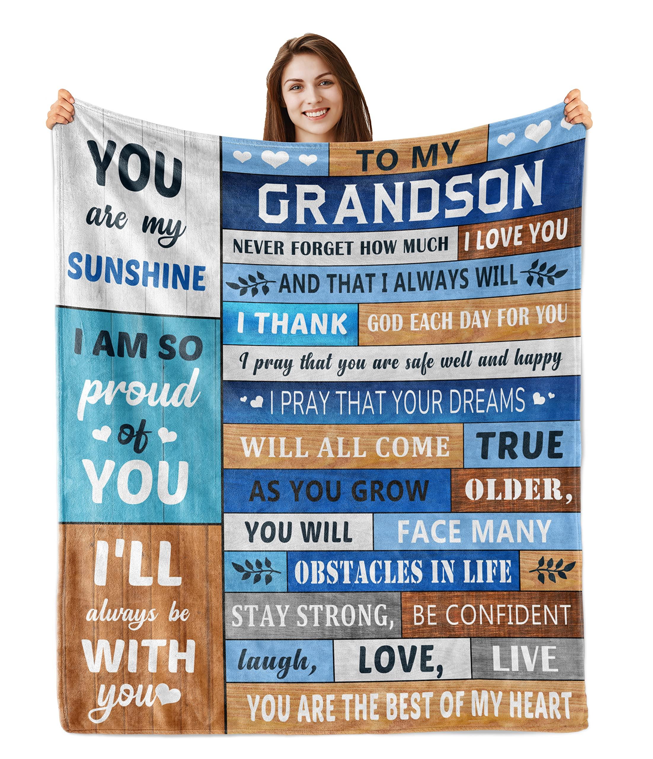 - MEANINGFUL WORDS BLANKET - This high-quality throw blanket is made with super-soft, anti-pill fleece premium quality fleece. Write this sweet letter to your grandson so they can wrap themselves up in your love. Snuggle up in this ultra-cozy fleece blanket, and read the sweet words printed on the blanket, such as "never forget how much I love you and that I always will ", I thank god each day for you, and I pray that your dreams will all come true", "as you grow older, you will face many obstacles in life, stay strong, be confident" etc. This gift for your grandson must bring a tear to your grandson's eyes.