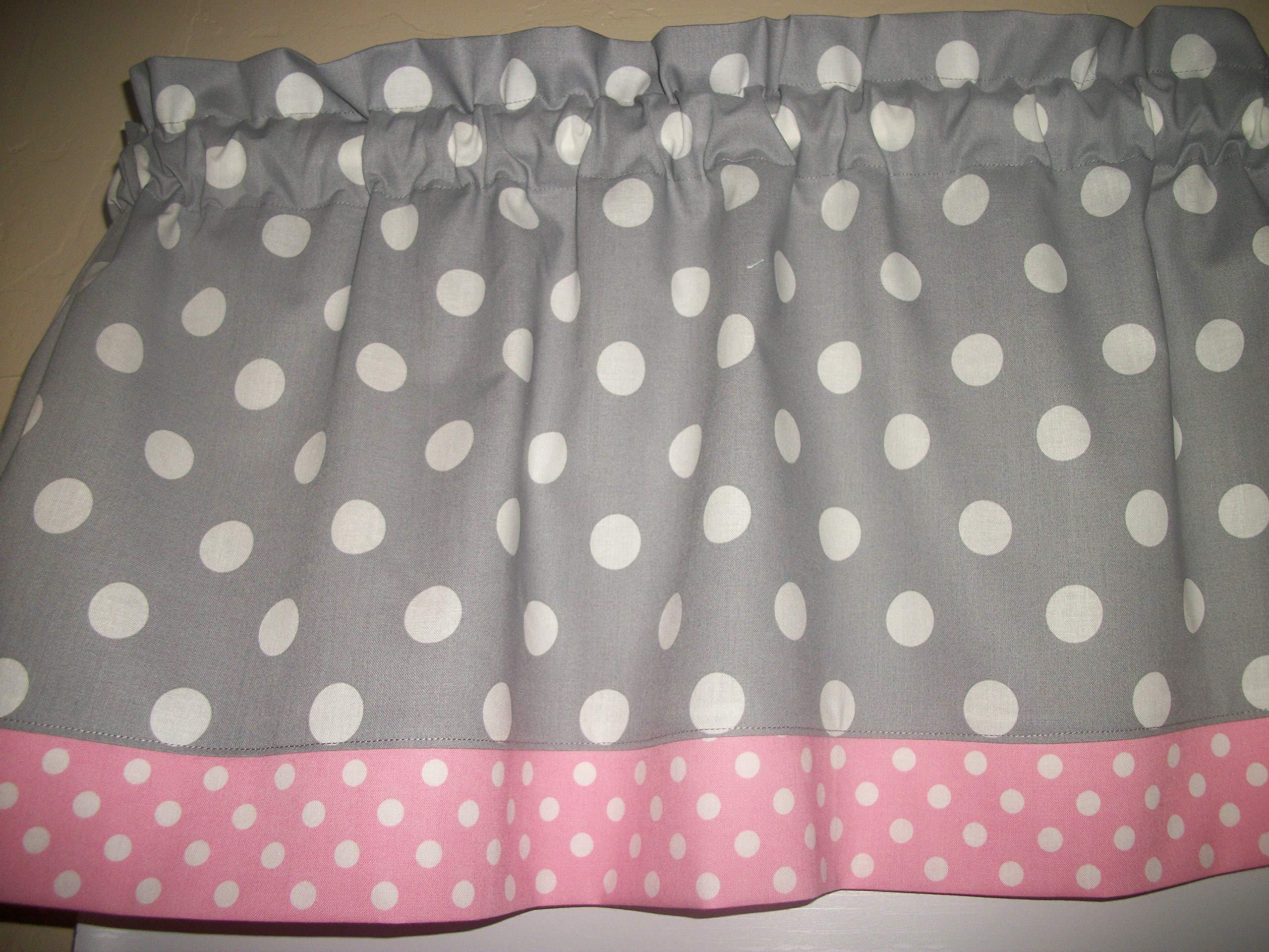 This listing is for one, made by me, Gray and Pink Polka Dot valance pictured above. It is NOT lined. It measures apx. 42" wide by 13" long. This includes a 1 1/2" rod pocket and 1" top header. This valance uses a regular 1" white rod. You could also use a small round white rod. The fabric is 100% cotton, but is not drapery weight. The weight of the fabric is the same as a bed sheet. It can be washed on the gentle cycle and dried on low for ease of care. The rule of thumb is that you need 1 1/2 to 2 times your window opening. You many need more than one valance for your window. If you have any questions, please feel free to ask.