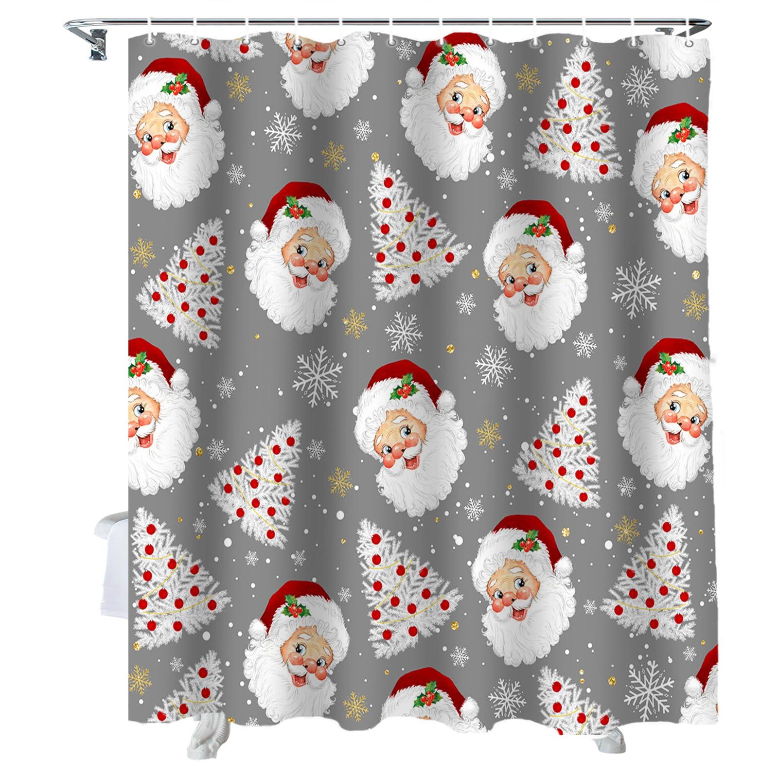 - [CHRISTMAS BATHROOM DECOR] Designed With Grey Christmas Santa Claus Merry Christmas Tree Winter Snowflake Background,This Christmas Shower Curtains Add Winter Holidays Art Accents for Bathroom Whether At Home/Hotel/Apartment/Dormitory/Camper/Rv Dorm Setting; [SUITABLE FOR ALL AGES] Christmas Shower Curtain Set Bathroom Decor for Adults Mens/Womens/Boys/ Girls/Kids;Perfect Shower Accessories/Home Xmas Decor Gifts