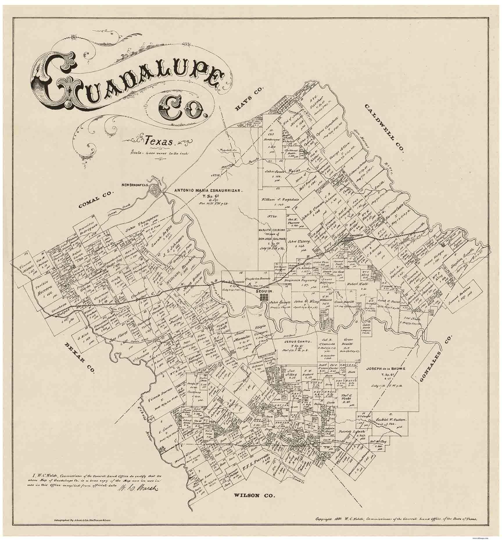 Who owned your land in the late 1800s? This Texas county wall map shows the roads in the county and names of the land owners and their lots. The reprint is made from the original on file at the Library of Congress. We have done minor edits to the electronic file to make this more presentable. Great for genealogists and history lovers. We offer this map in various sizes. (Original size: 22" x 24". We have done some editing to make the map more attractive. ****Some text will be hard to read or illegible at the smaller sizes, but the map still makes an attractive wall display.**** Please compare to "original size" in our description when ordering. Printed on high quality bond paper with Canon ink. Also available on canvas. ****Please choose carefully as maps are not returnable.****