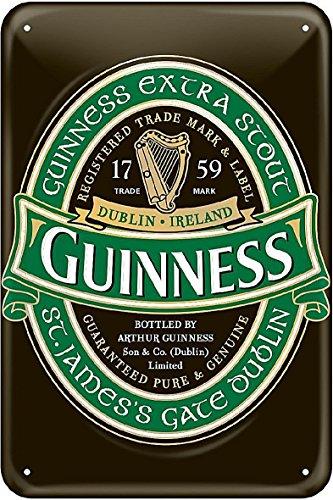 Guinness Ireland Green Label Embossed Metal Sign 12\" x 8\"