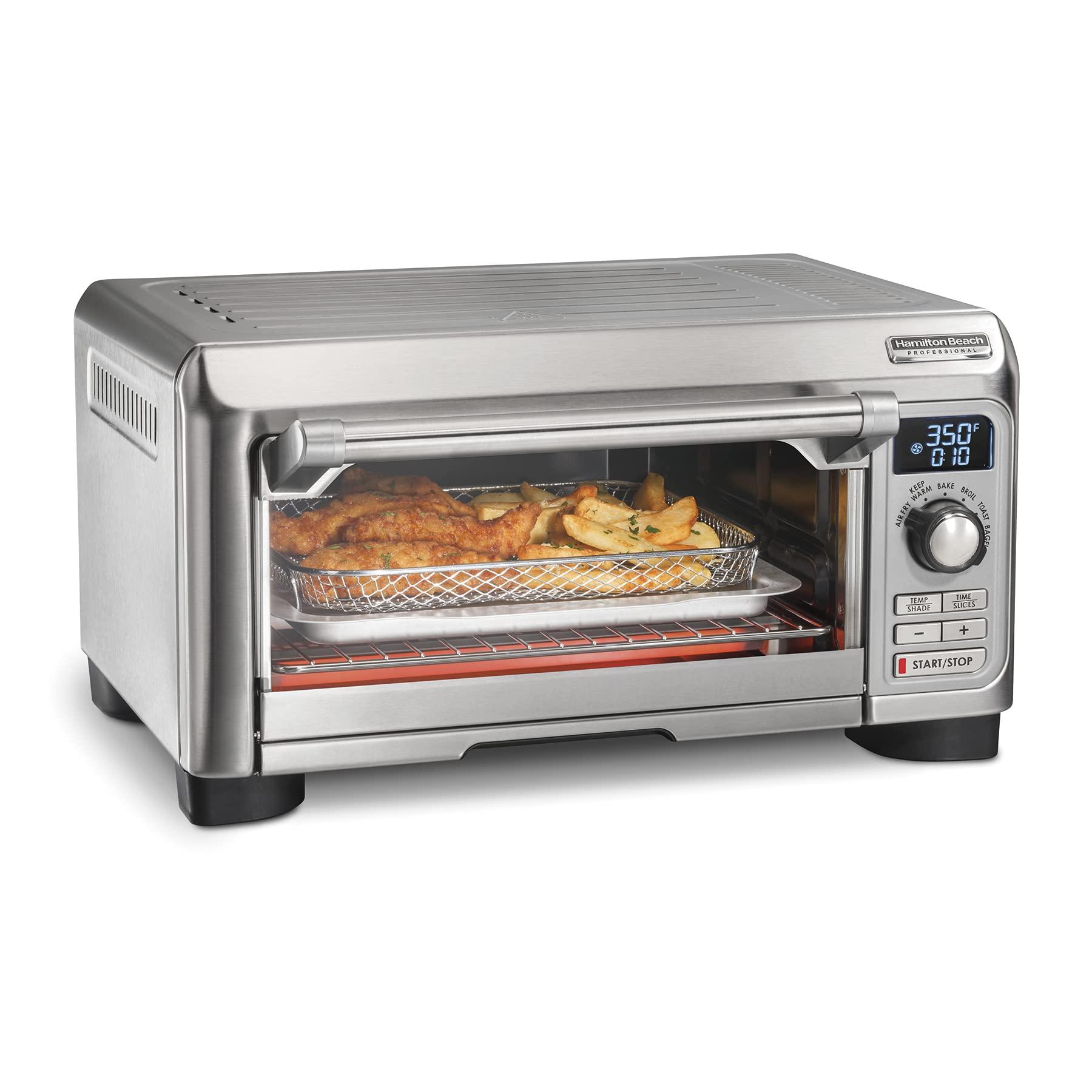 The Hamilton BeachProfessional Sure-CrispAir Fry Digital Toaster Oven powerfully circulates air around food for delicious, crispy results. Six versatile settings provide multi-functional cooking and the compact size is perfect in every kitchen.