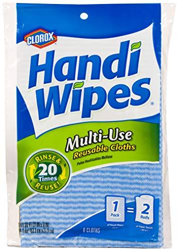 Reusable Handi Wipes offer all the convenience and absorbency of single use paper towels, but last 20 times longer. They are ideal for wiping, cleaning and scrubbing kitchens, countertops, bathrooms and more. These durable cloths are machine washable, so they can be used several times over. Sheet after sheet, they are a better economical choice than paper towels. One pack of 6 cloths is equivalent to 2 rolls of 60 count paper towels, which means you buy fewer and use less of the environment's resources. Use Handi Wipes Reusable Cloths for versatile cleaning throughout your home. Do not flush.