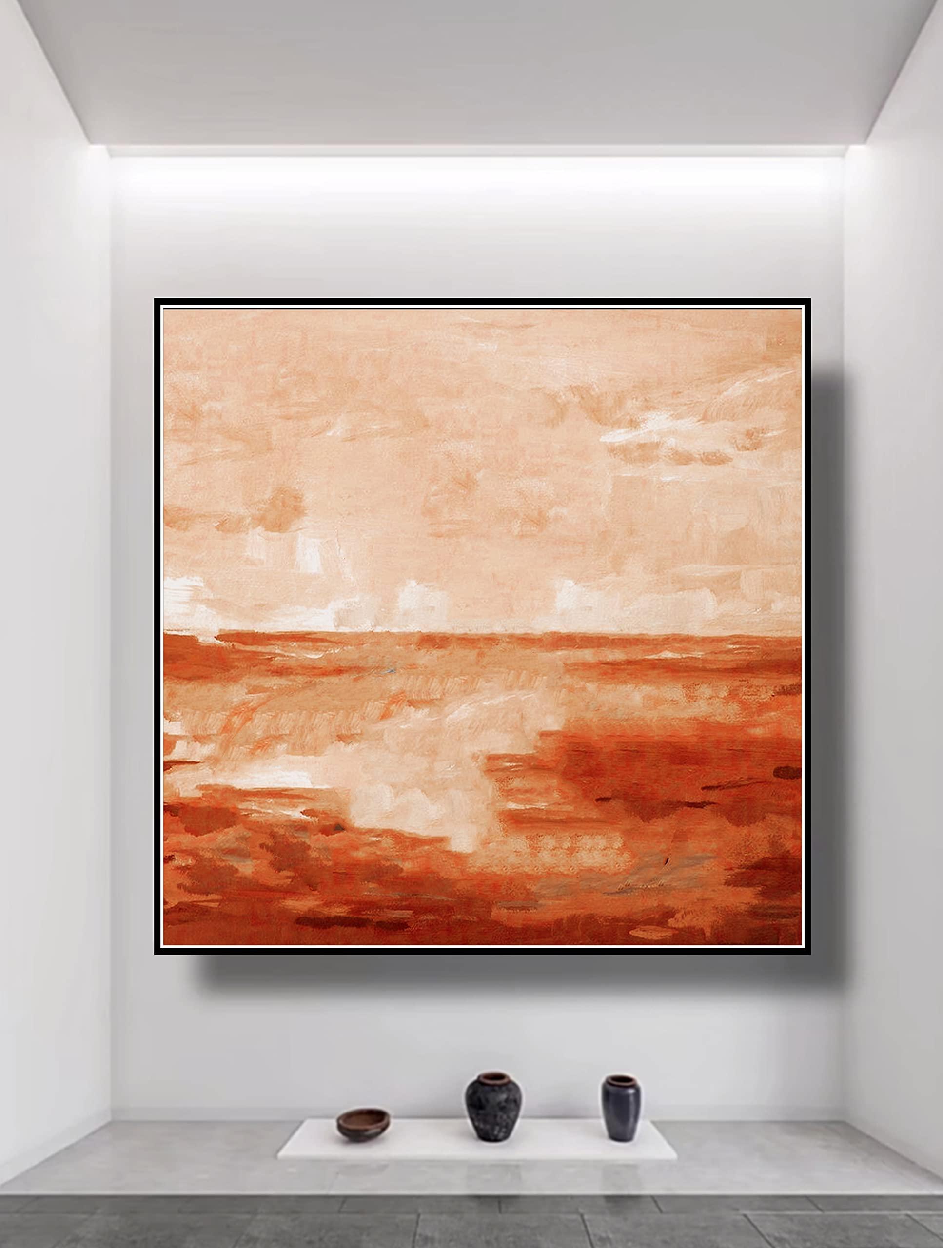 Handmade Abstract Painting Original Brown Large Acrylic Canvas Sunset Wall Art, Sea Art Modern Abstract Art on Canvas 60x60 inches