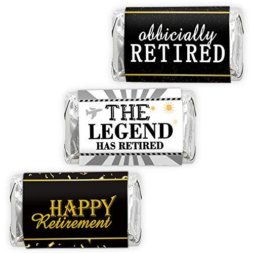 - CANDY NOT INCLUDED. Stickers wrap exactly around Hersheys Miniatures candy bars for easy retirement party favors; 2.65 X 1.45 each.