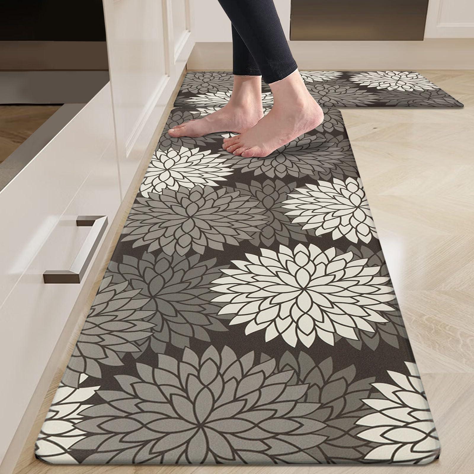 - Versatile Cushioned Kitchen Rug Set: HEBE washable kitchen floor carpet set provides ample support for standing in kitchen, kitchen sink, stove, laundry room, office, farmhouse or any other high-traffic indoor or outdoor space. The neutral color matches any decor.Also be great gift idea for Thanksgiving,Christmas or any other holiday!