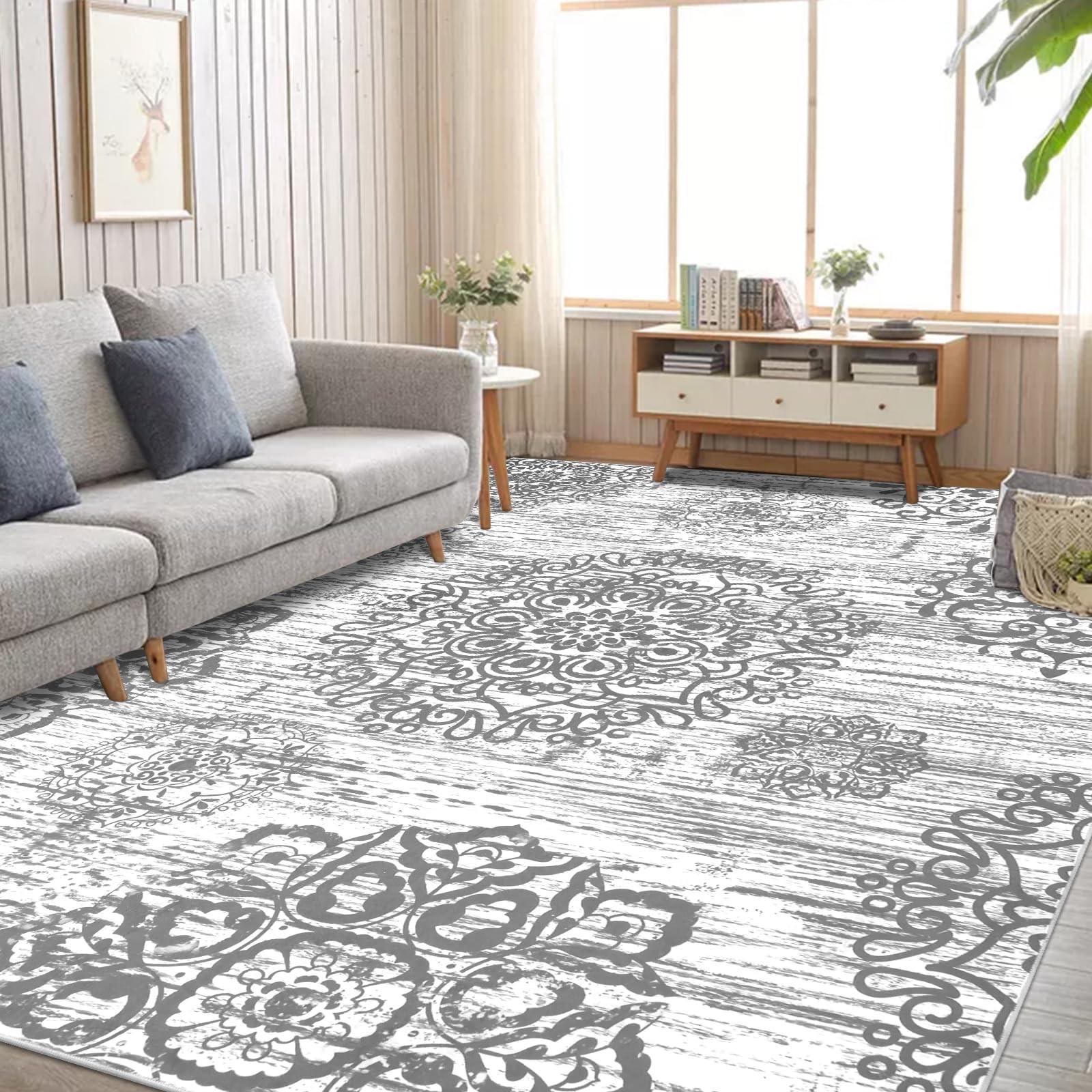 - [Machine Washable Area Rugs]: The 9x12 washable rug can be routinely cleaned with a regular vacuum cleaner or machine washer. For a deep clean, You can toss it into the washing machine, wash it in cold water and hang it to dry or air dry. The floor carpets for living room bedroom have been tested for many machine washes, will not fade or deform.