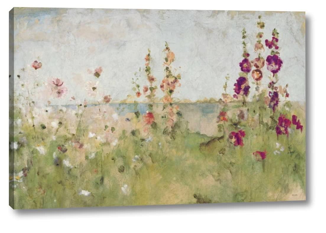 This 20" x 30" Gallery Wrapped Canvas Art Print of Hollyhocks by the Sea by Cheri Blum is created on the finest quality artist-grade canvas, utilizing premier fade-resistant archival inks that ensure vibrant lasting colors for years to come. Every detail of the artwork is reproduced to museum quality specifications by our talented graphic artists. This magnificent canvas print is gallery wrapped by one of our professional framers on 1.5 inch deep wooden stretcher bars. The gallery wrap process allows you to hang the artwork on your wall frameless, since the printed border is wrapped around all four edges. Your gallery wrapped canvas print will arrive to your door ready to hang with all necessary hanging hardware. Canvas Art USA brings your walls to life with our meticulous attention to detail, all backed by the best customer service in the biz.