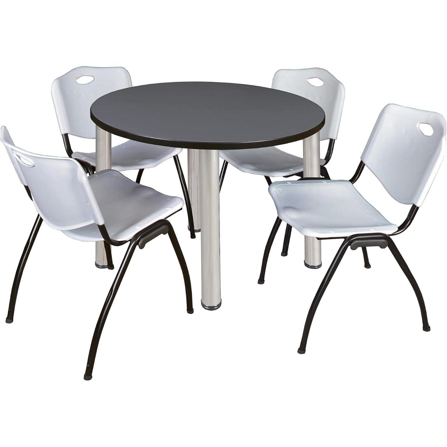 - Perfect for Casual Gatherings Designed for casual use, this set provides a sturdy Grey tabletop that's easy to clean, ideal for frequent gatherings. Affordable yet stylish, it's a great choice for small businesses seeking durable breakroom tables and chairs that enhance employee comfort and space utilization.