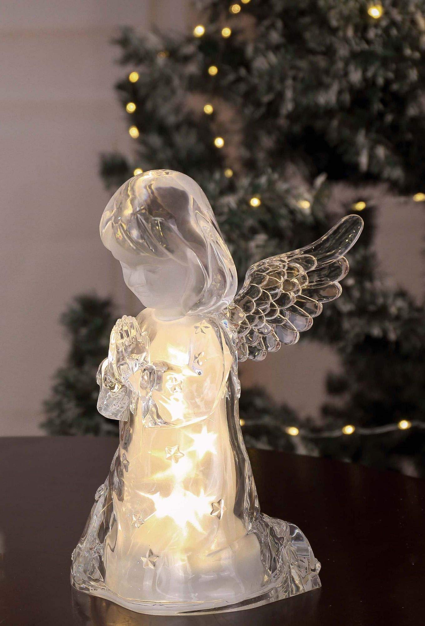 >Cherub are beautiful creations of God. Why not show some appreciation to this beautiful angelic creations by displaying this figurine. With LED illuminating the radiance, it will be the most amazing thing you would've ever seen.>Product Features: Tabletop features medium size cherub. Features golden glitter stars details inside the table-toppers. Comes with detailed star LED light accent inside. Perfect for Christmas or holiday decoration. Requires 3 AA batteries. Recommended for indoor use only. Warning: choking hazard>Dimensions: 10.375" high x 7.5" wide x 6.75" deep. Material(s): acrylic>Set includes 2 of the items shown