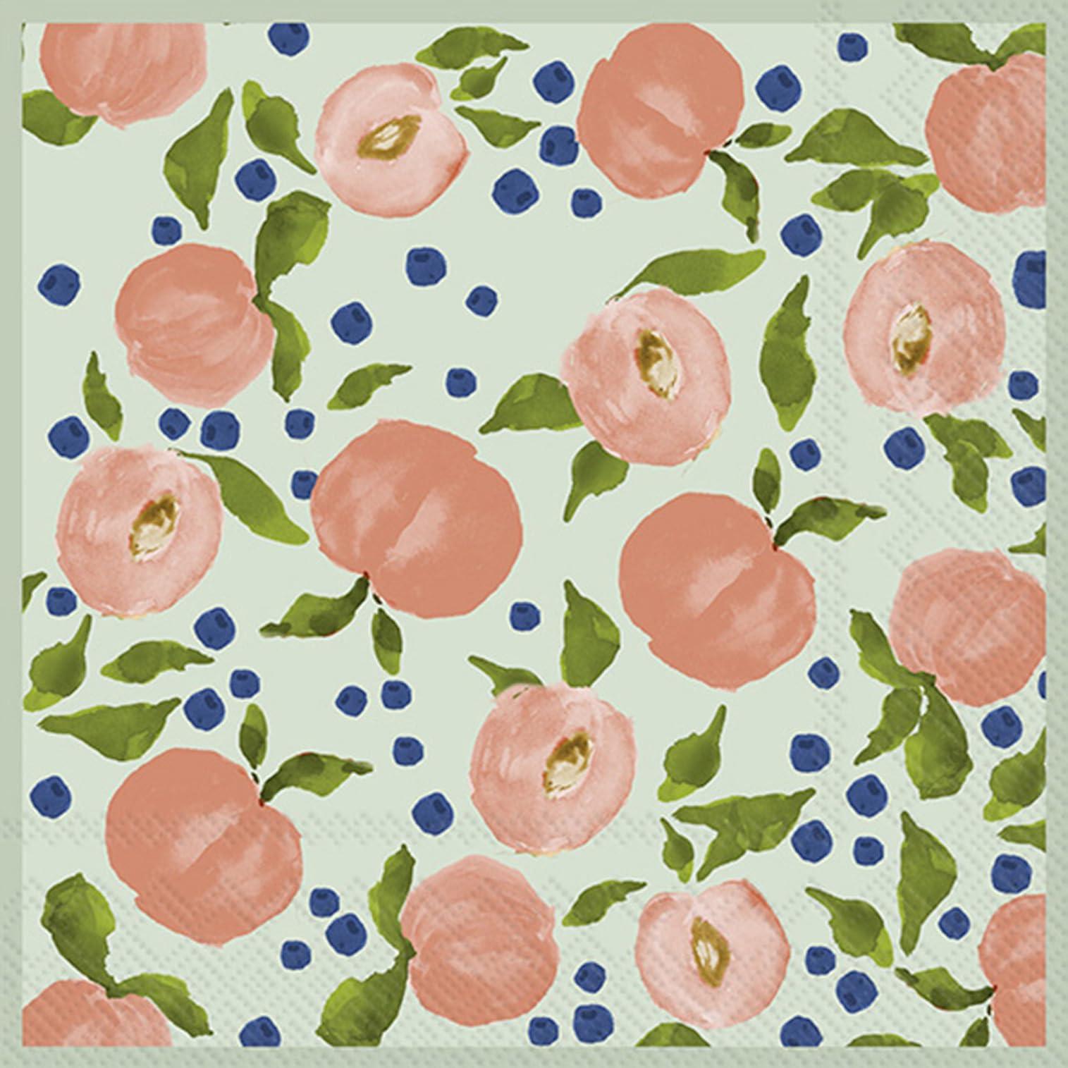 - FESTIVE TABLE DCOR Fresh painterly peaches on light sage green background; ideal for spring celebrations, summer gatherings, and everyday dining