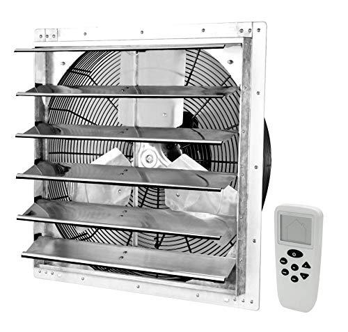 iLiving - Wall-Mounted Shutter Exhaust Fan With Remote Are you looking for a reliable way to reduce your cooling costs while keeping your home cooler and more comfortable year-round? If so, youve found just what youre looking for! Made with top quality materials, craftsmanship and engineering, the iLiving Shutter Exhaust Fan is designed to offer superior ventilation in any space you choose to install to keep your living space cooler and more comfortable year-round while reducing expensive cooling bills. Heavy-Duty, Galvanized Steel Frame. Weather Resistant Aluminum Shutters and Blades. Motion-Balanced for Quiet Operation. Thermally Protected and Permanently Lubricated Motor. Automatic Shutters. For Home Cooling and Ventilation. Corrosion-Resistant Wire Guards. Variable Speed Setting Functionality With Remote. UL Listed. Available in 6 Size Variations. Perfect Cooling and Ventilation Solution For Homes , Attics , Garages , Sheds , Reducing Cooling Costs , And More. The fan comes fully assembled out of the box; only installation required is the electrical hardwiring. The shutter fan comes in 6 different sizes: 10 inches, 12 inches, 16 inches, 18 inches, 20 inches, and 24 inches.