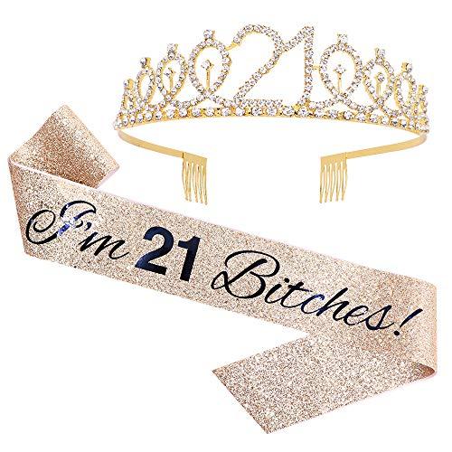 - "I'm 21 Bitches!" sash + rhinestone tiara gifts set.