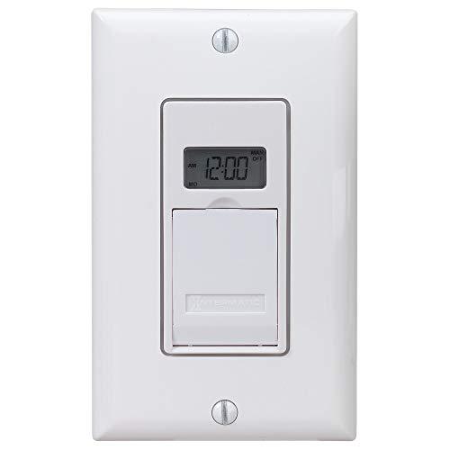 The EJ600 (White) Digital In-Wall Timer will replace a standard or decorator indoor wall switch. It is good for use with lights, fans, pumps and other medium duty loads. Compatible with incandescent/fluorescent/CFL/LED lights. Flush mounted sleek design. Built-in rechargeable Lithium ion battery back-up. 7 ON/7 OFF settings per day. Programming options: same settings Monday-Friday, same settings Saturday and Sunday, same settings every day of the week or individual daily settings. Random feature turns lights ON/OFF at different times each day to give the house a lived-in look and deter burglars. Automatic daylight saving time adjustment. 12 Amp General Load, 120 VAC, 60 Hz, 4 amp ballast and tungsten.