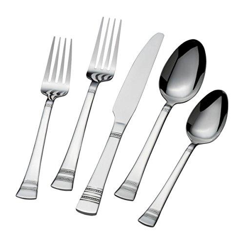 - 20-piece set includes 4 each of: salad fork, dinner fork, dinner knife, dinner spoon and teaspoon