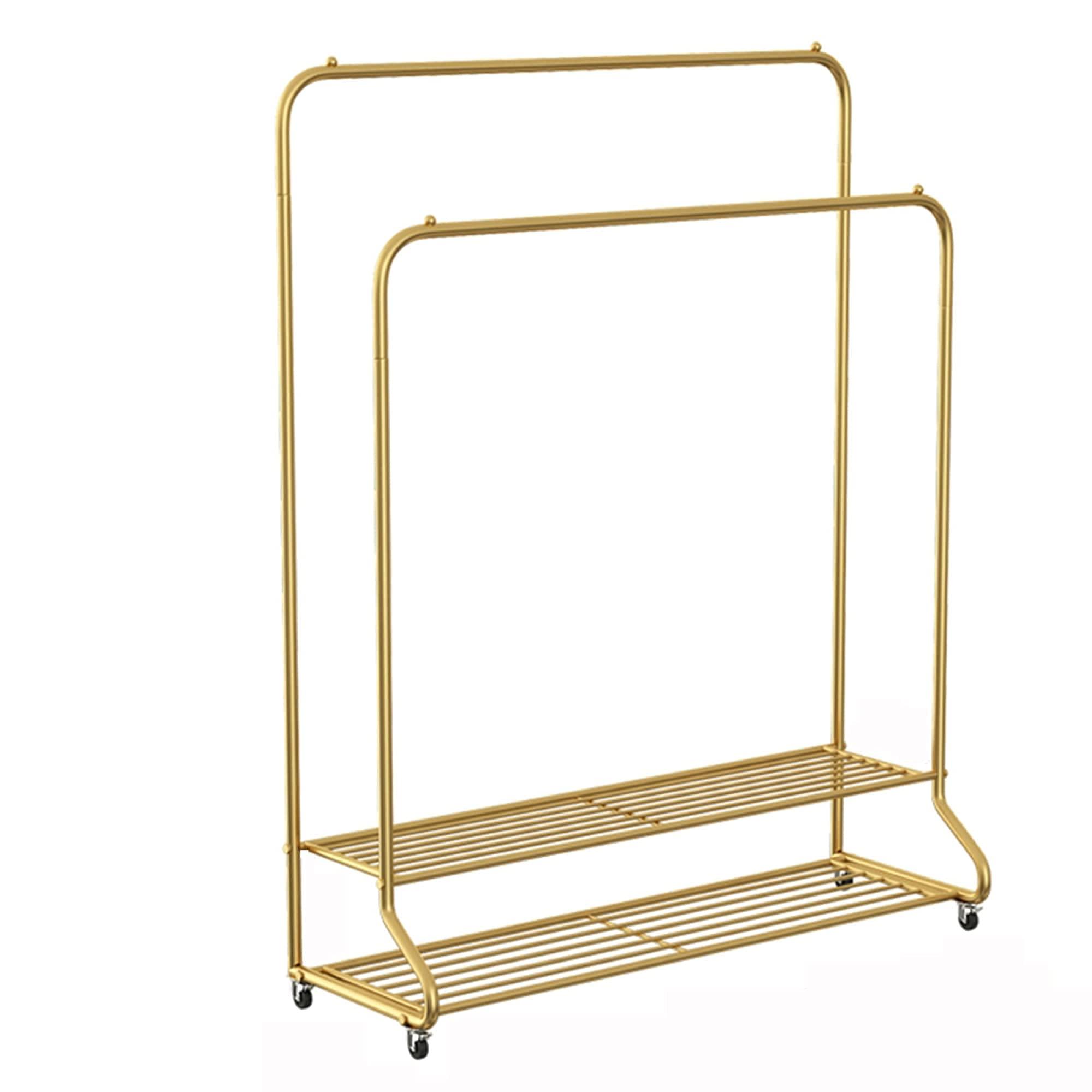 It is Made of High-Strength Metal and Uses Heavy Chromium Plating to Enhance Rust and Corrosion Resistance.Two Sturdy Shees for Sto Shoes, Shoe Boxes or Any Large Items You Want to Store Safely.Flat Packaging, Step by Step, Clear Instructions, Easy to Assemble the Hanger.Rotating 360, the Plastic is Not Easy to Damage the Floor, and Its Own Brake Design is Safe and Stable.Used to Hang and Separate Different Clothes; Very Suitable for Apartments, Shops, Schools or Stylist's Workplaces.Product Name: Multifunctional Heavy-Duty Storage RackProduct Material: MetalProduct Color: GoldProduct Length: 80/100/120CmProduct Height: 150CmProduct Width: 40CmDo You Need to Install: Yes