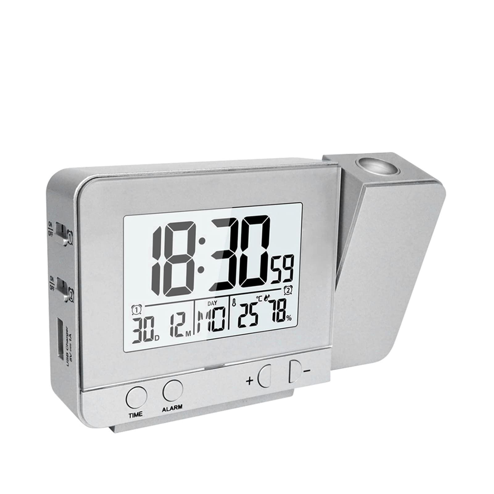 - 180TIME & TEMP PROJECTION -- 160rotatable projector can project ultra-clear Time and Temperature on your walls or ceiling; Multi-angle adjustment with 180reverse button to meet any occasions. Whenever you wake up, the first thing comes into your eyes is time and temperature.