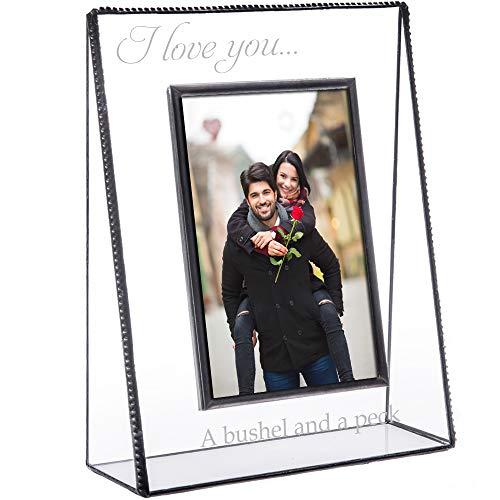 - "I Love You a Bushel and a Peck" engraved standard on this clear glass photo frame