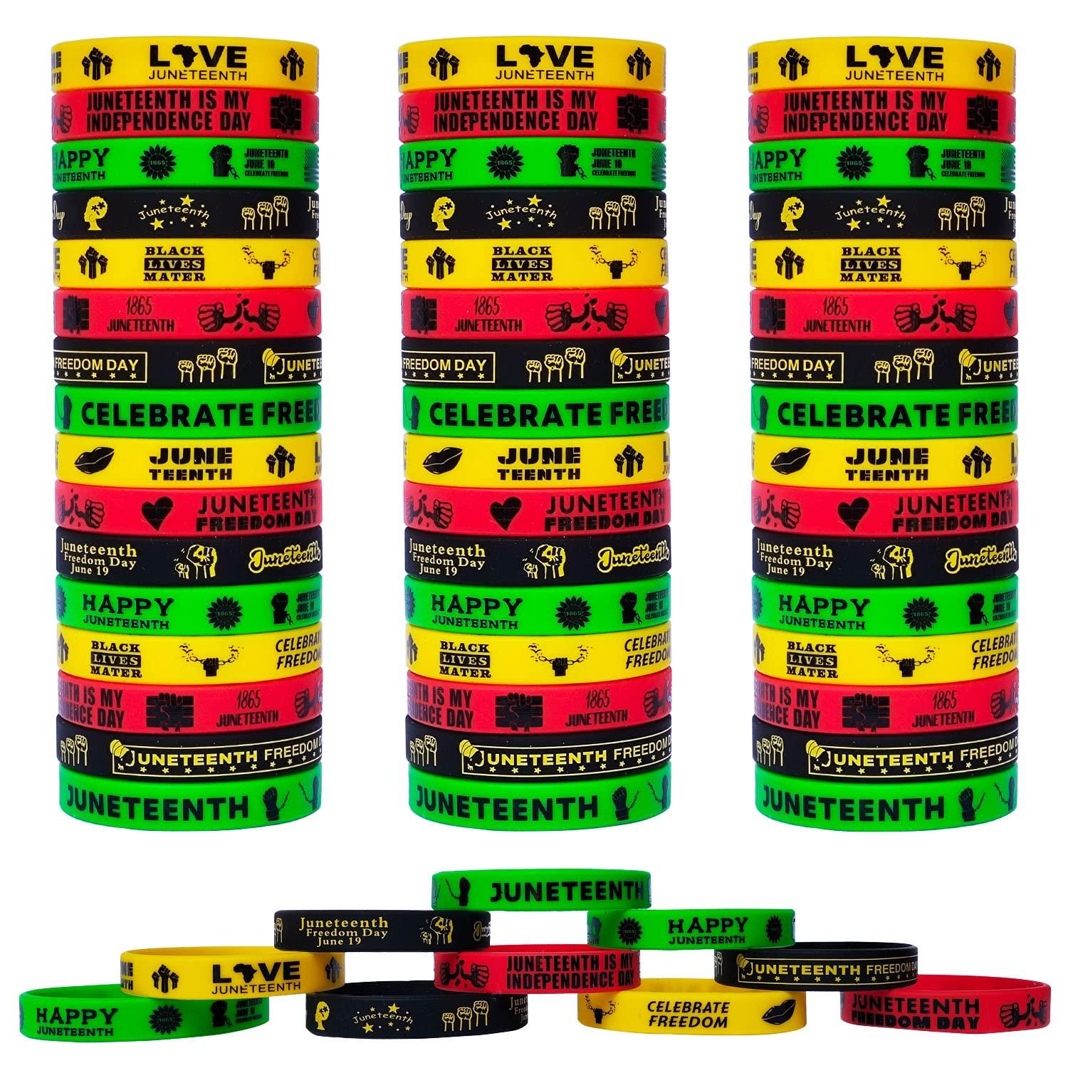 - 1.ADOREABLE JUNETEENTH BRACELETS: Cute design, black red green and yellow bracelets. This Juneteenth party favors set would be a huge hit.