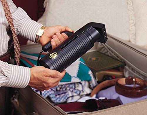 Travel with confidence with this ESTEAM travel steamer from Jiffy Steamer. This garment steamer provides convenience with its handheld feature, making it quick to use when going out of town for business or special occasions. Keep your clothes wrinkle-free, and save time with over 15 minutes of steam per filling.