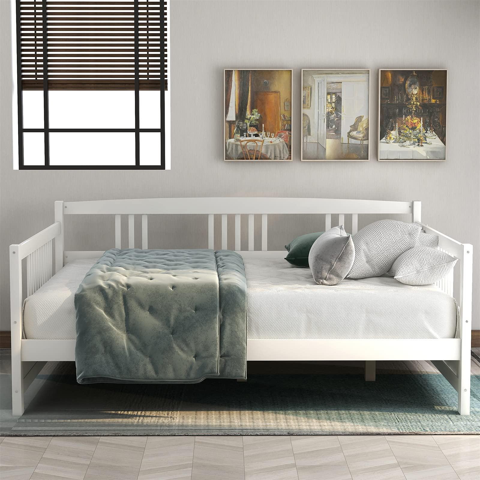 - Vintage and Modern Look: This dual-use daybed frame can be a bed if you are sleepy, and it can also be a pretty and fashion sofa. Daybed with wood slats and fine finish brings fashionable style, classic and vintage looking to the bedroom or living room. Considerate design of three-side rail is the great choice for those in need of comfort guaranteed. Unique sofa bed is suitable for a bedroom, a guest room, a living room or anywhere you need it.