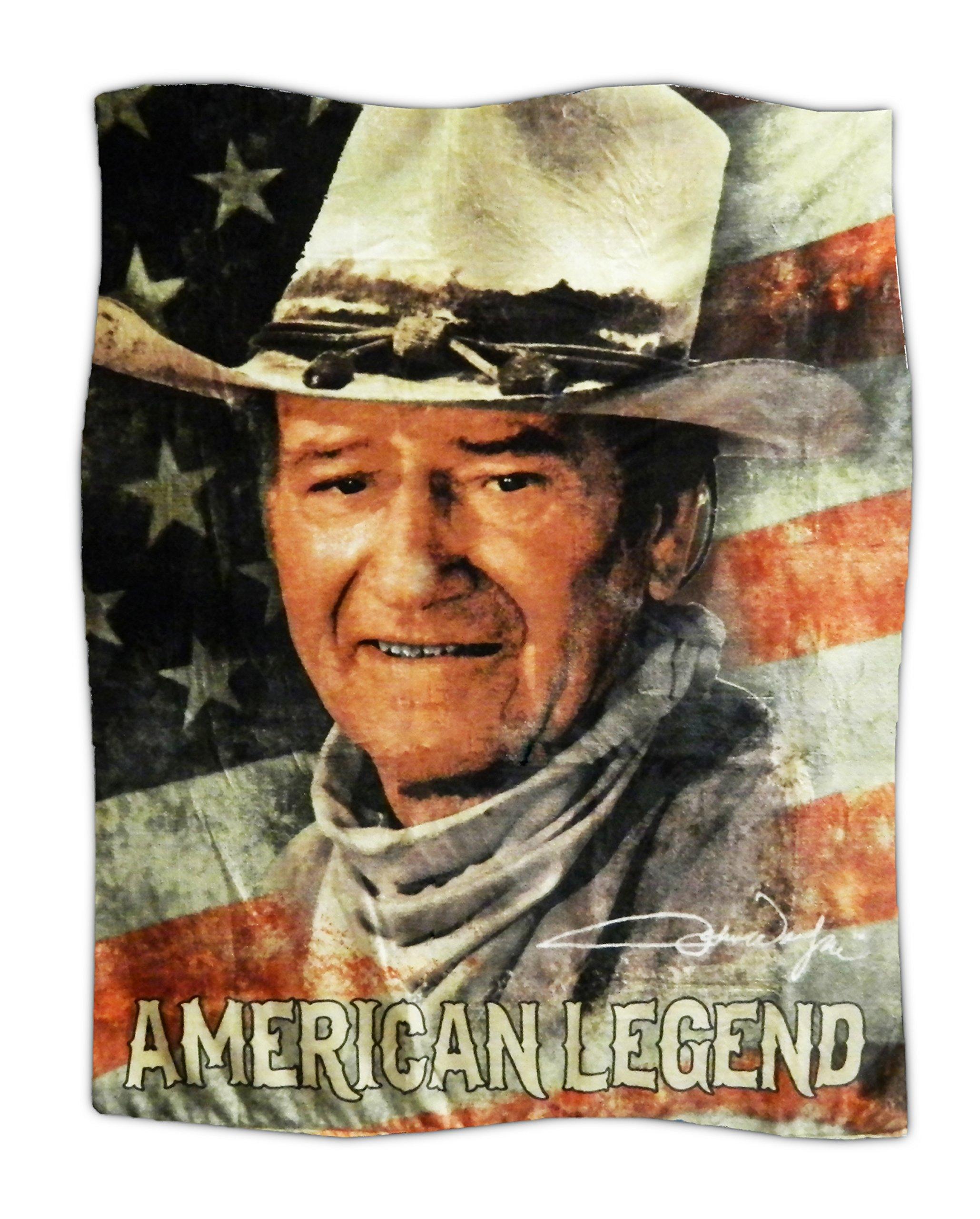 John Wayne super soft coral plush fleece throw blanket 50"x60" a great size for a bed coverlet or sofa decor. Soft and warm lightweight material. 100% polyester. Great gift for the ultimate John Wayne collector. Who We Are -- Mid-South Products was founded by local Memphian Mark King back in 1975. Located in Memphis, TN, we are a licensed manufacturer and distributor of nostalgia souvenirs. All products are licensed and bona-fide.