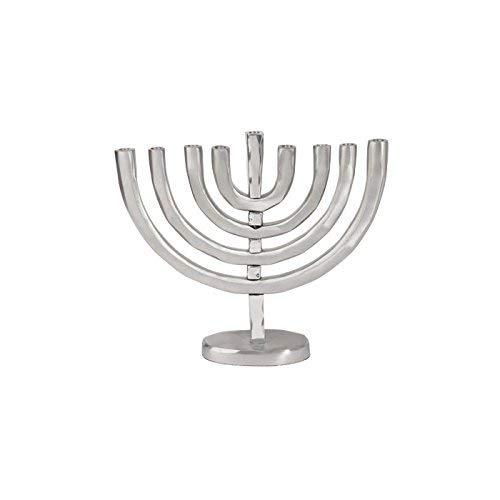 The vibrant gleaming metal jewel-tones with the brushed metal finish in sleek modern shapes add color and elegance to your observance. This silver-toned Hanukkah Menora beautifully combines a classic shape with hand-crafted finish.