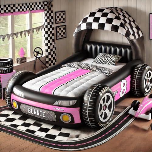 Justina James Inflatable Race Car Bed - PuffyPlay Designs - Pink - (Mattress Not Included)