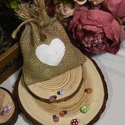 - White Love Heart Print Natural Jute Hessian Burlap Drawstring Bags Rustic Wedding Favors Party Gift