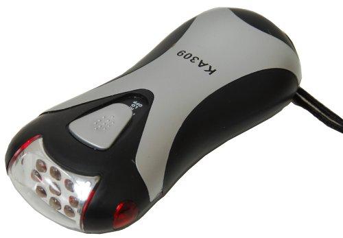This newly released emergency flashlight features 9 super-bright white LED (light emitting diode) bulbs. The flashlight is equipped with built-in high-capacity and long-life NiMH rechargeable batteries, with one minute of hand cranking, the flashlight can last somewhere between 15 -20 minutes. With its compact size and light weight, it's ideal for glove-box, tool-box, purse or desk drawer. It also comes with a built-in compass and siren, suitable for outdoor activities such as hiking, camping, kayaking and etc.