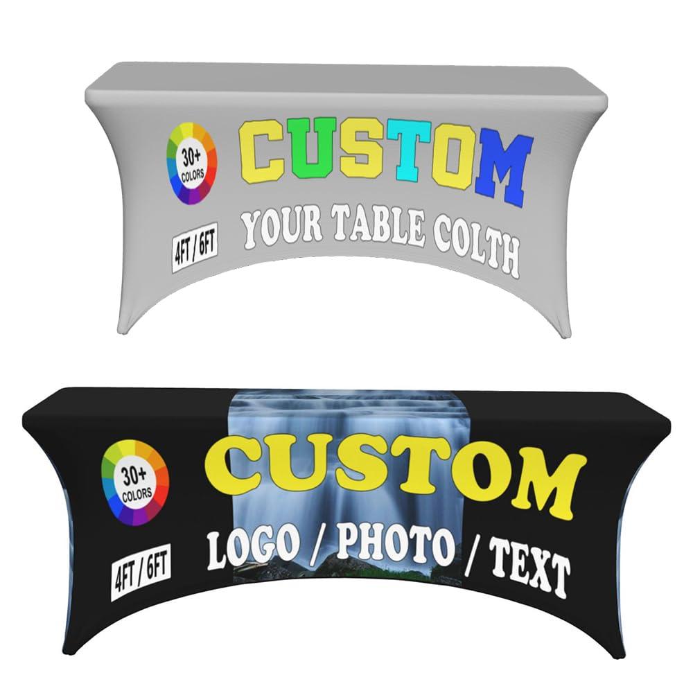 - Custom Tablecloths: Please click "Customize Now" button, upload your image logo text. Showcase your brand or themed activities in a unique way.