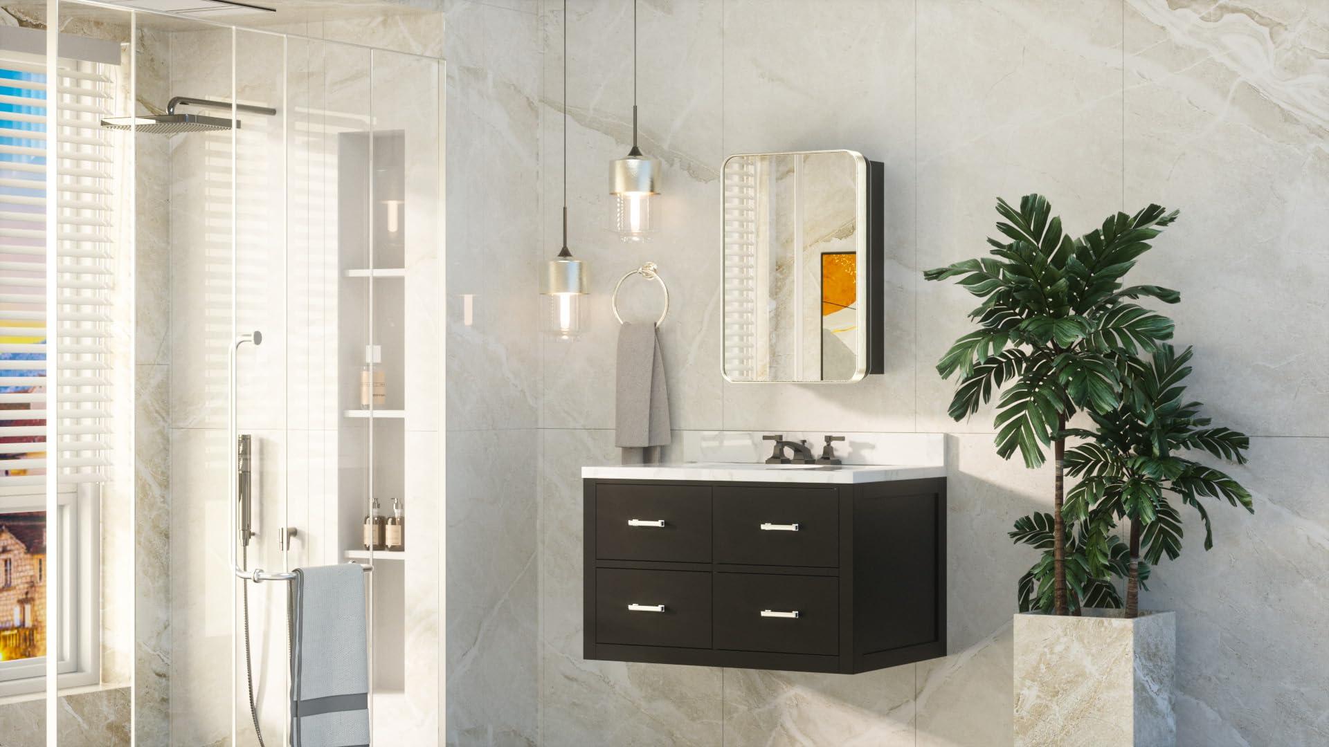 - Substantial & DesirableCrafted with stainless steel cabinet door frame that seamlessly combine visual appeal of aesthetic metallic luster and practicality of waterproof & rustproof, elevating your bathroom's dcor style. The metal cabinet ensures substantial enduring usage. The 5mm copper-free mirror texture guarantees HD reflections with no distortion.