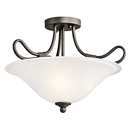 This delicate 2 light convertible inverted pendant or semi flush ceiling fixture features a rich, Olde Bronze finish and luminous Satin Etched White Glass.