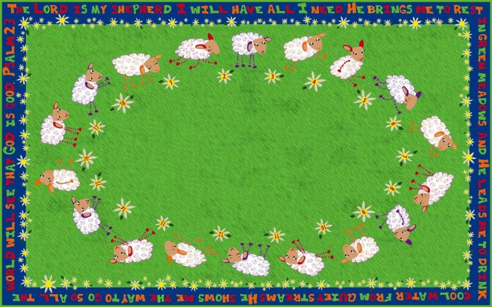 - EXCLUSIVE DESIGN RUG:- This religious rug is a KidCarpet.com exclusive design. Psalm 23 is beautifully illustrated in this children's circle time rug. Perfect for a church nursery or religious classroom.