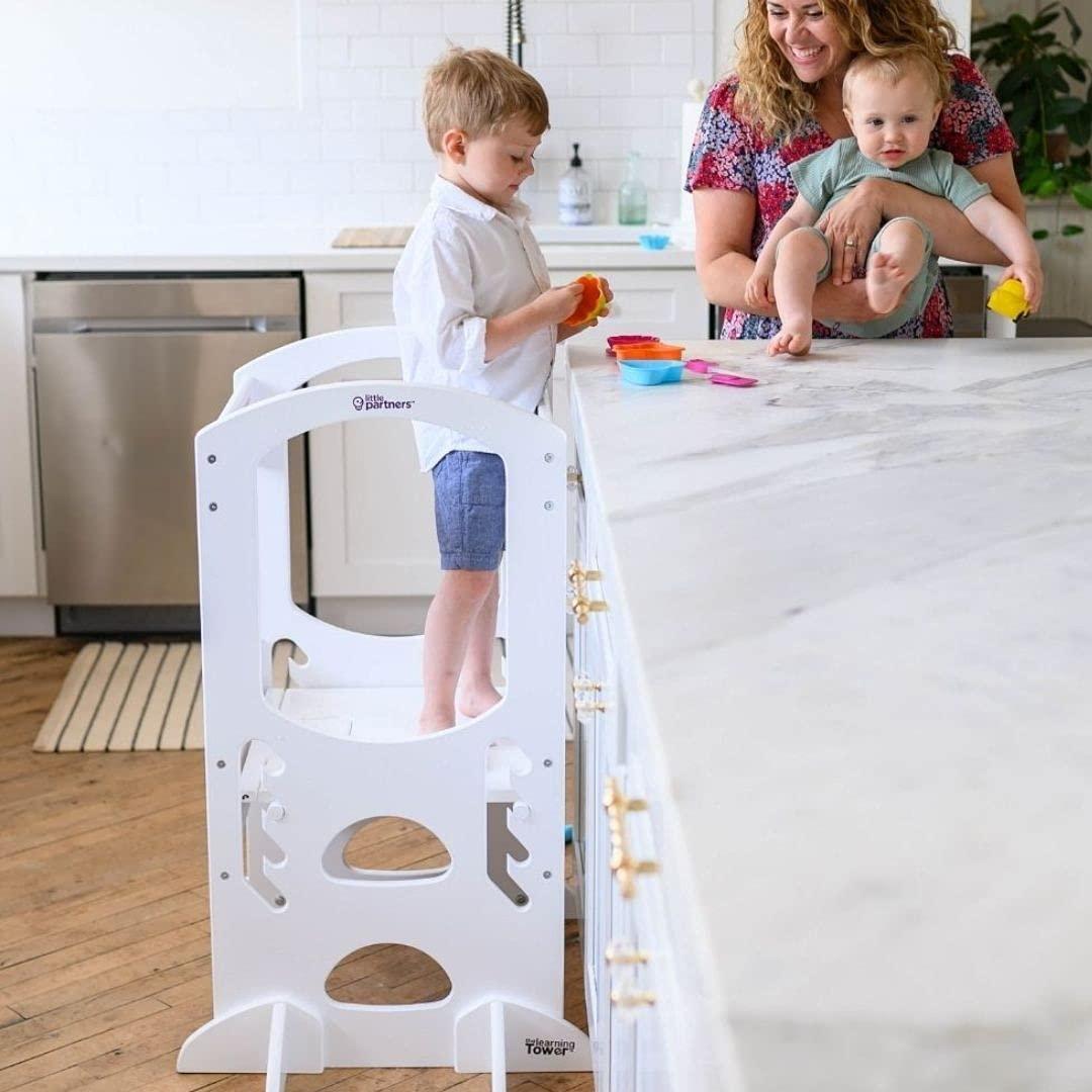 - LEARNING TOWER FOR TODDLERS: This Learning Tower stool is inspired by the Montessori learning principles. It can lift your child up to counter height of a kitchen bar. Our Learning Tower encourages interaction, exploration and togetherness between children and parents for bonding activities.