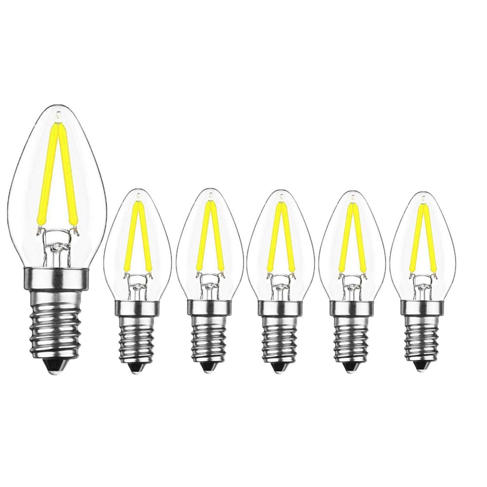 - PERFECT PERFORMANCE:This E12 C7 LED Candelabra Light Bulbs,E12 Base,AC110V,Dimmable (use with triac dimmer),give off 6000K Daylight White, Ultra-thin Crystal,Clear Glass with High Transmittance,Mercury-free,No UV,CE and RoHS Authenticate