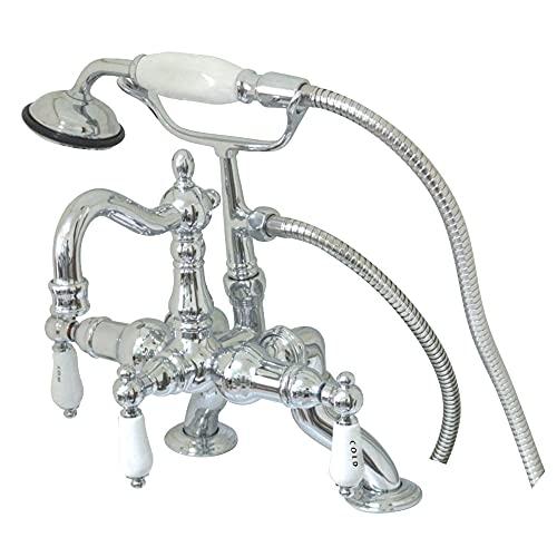 Vintage opulence finds itself within this deck-mount clawfoot tub faucet. As the perfect complement to your tub, this will complete your refined bathroom decorum with the help of its premium, glistening polished chrome finish and telephone style hand shower. The solid brass construction also makes for a heavy, quality made product.