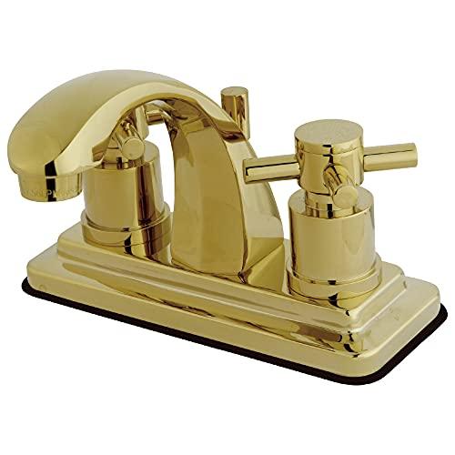 Kingston Brass KS4642DX Concord Twin Lever Handles 4" Centerset Bathroom Faucet, Polished BrassTwo Handle Deck Mount, 3 Hole Sink Application, 4" Centerset, 3 hole 4" center spread installation, Fabricated from solid brass material for durability and reliability, Premium color finish resist tarnishing and corrosion, 1/4 turn On/Off water control mechanism, 1/2" IPS male threaded shank inlets, Duraseal washerless cartridge, Max 1.2 GPM/4.5 LPM water flow rate at 60 PSI, Integrated removable rator, 4" spout reach from faucet body, 5" overall height.Kingston Brass KS4642DX Concord Twin Lever Handles 4" Centerset Bathroom Faucet, Polished Brass Features: Brass Construction ADA Compliant Polished Brass Finish Max 1.2 GPM/4.5 LPM at 60 PSI 1/4 Turn Ceramic Disk Cartridge Concord Cross Handle Matching Pop-up Included 4" Centerset Installation 4 1/2" Spout Reach California and Vermont Restricted* Image shown may vary by color, finish, material or size