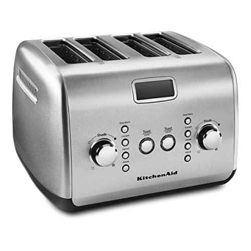 Make everyday simply delicious and easily toast your favorite breads, bagels and more with ease. This KitchenAid 4 Slice Toaster features extra-wide slots to toast a variety of shapes and sizes, including homemade or craft breads. For added convenience the adjustable shade control, from light to dark, ensures you'll have your toast just the way you like it, everytime. And dual independent controls means you can make toast for multiple people at the same time, just the way each of them like it.