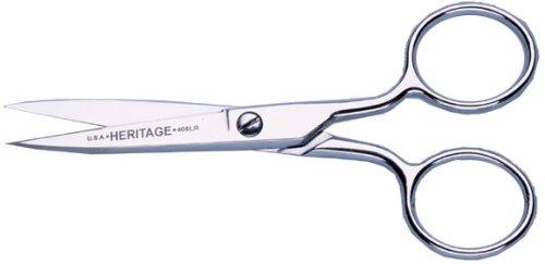 These extra sharp scissors have a Rockwell of 56-58, making them ideal for embroidery, sewing, fabric, electronics and many other industries. Sharp/Sharp Tips. Large Rings. Chrome over nickel plated for added rust protection. 5 3/16" overall length; 2 1/8" cut length.