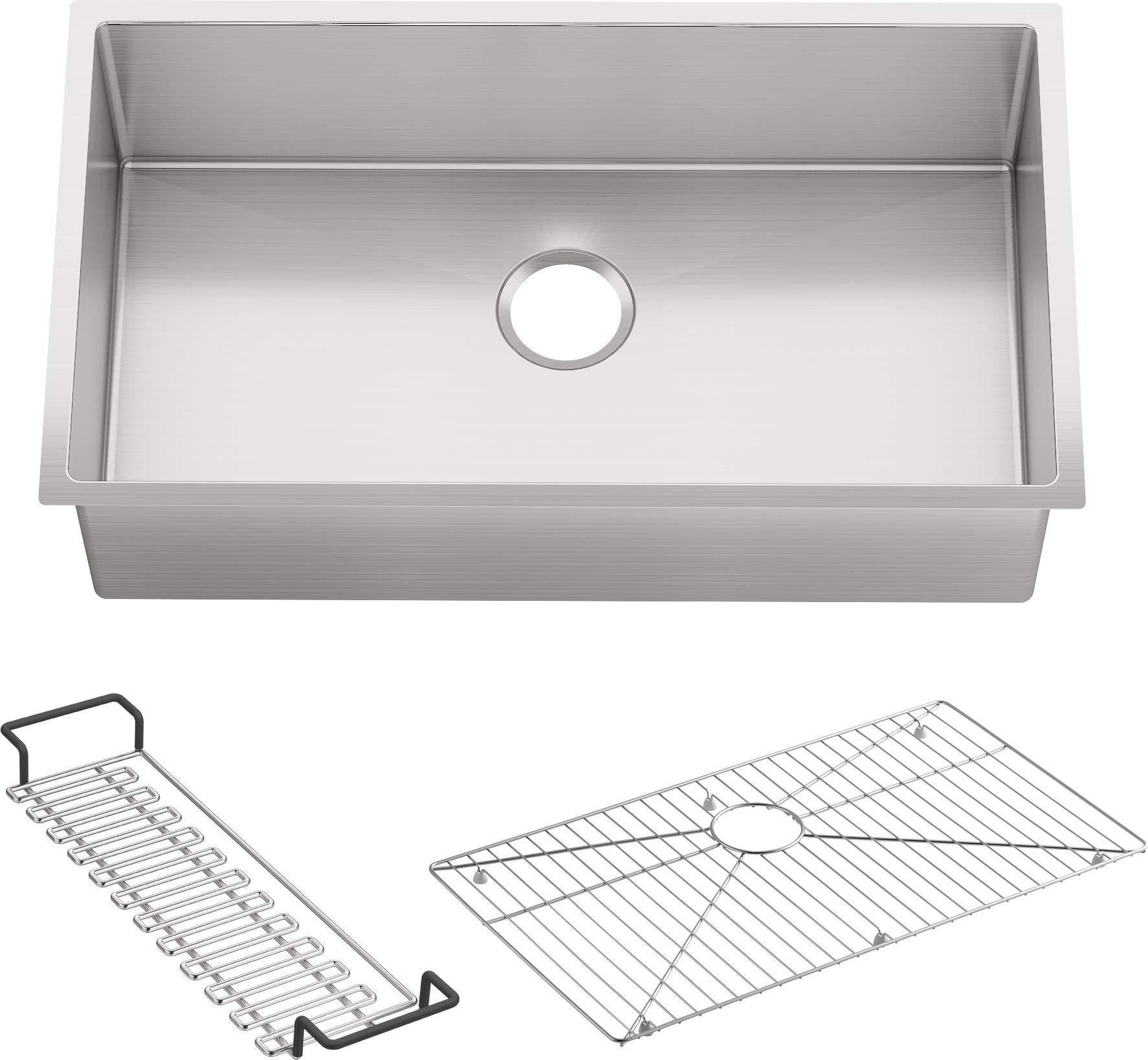 KOHLER K-5285-NA Strive 32 X 18-1/4 X 9-5/16-Inch Under-Mount Single Bowl Kitchen Sink with Basin Rack, Stainless Steel, 1-Pack